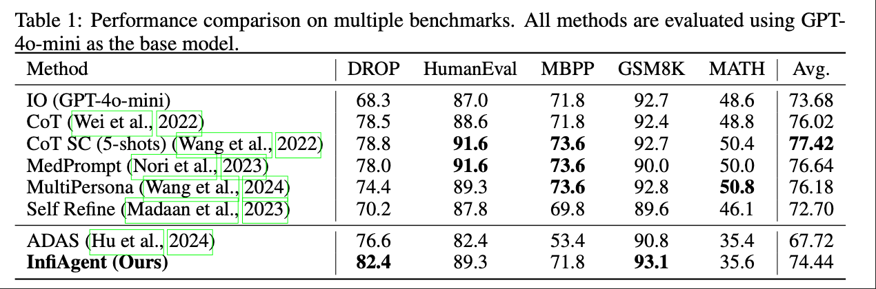 Theoretical innovation must be validated in practice. InfiAgent has demonstrated strong performance across multiple standard benchmarks: