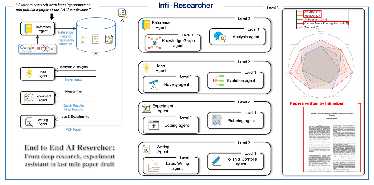Even more convincing is that our AI research assistant InfiHelper, built on the InfiAgent framework, has end-to-end generated research papers accepted by human reviewers at IEEE conferences, with almost no human participation!