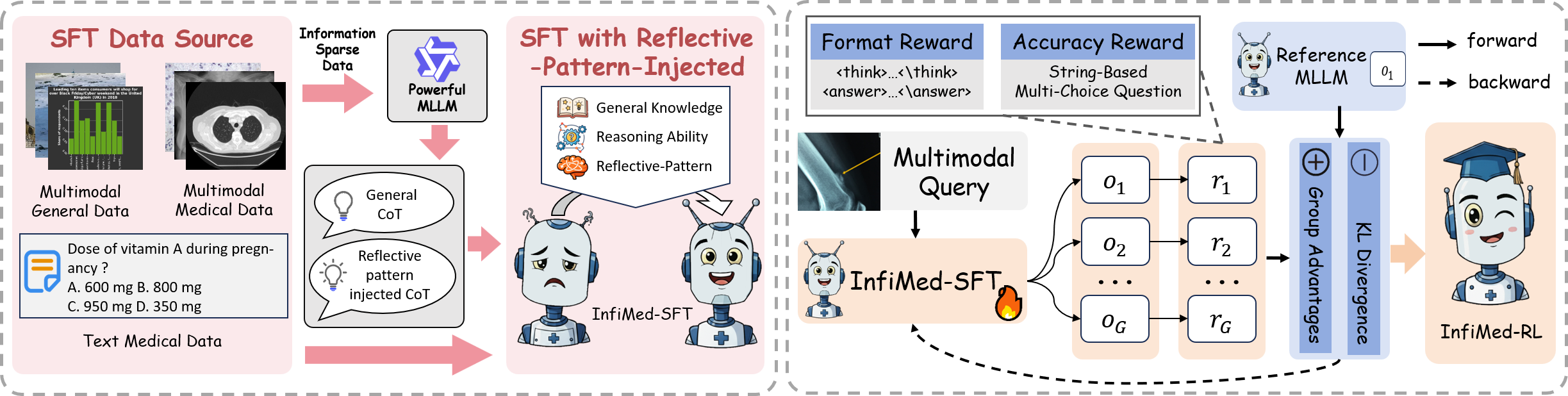 To address these issues, we propose the InfiMed training paradigm, which achieves a breakthrough in understanding and reasoning for medical MLLMs under low-resource conditions. Our InfiMed-Series 3B models surpass models with similar-scale like Google's MedGemma-4B-IT and even surpassing the larger InternVL3-8B, establishes a new state-of-the-art.